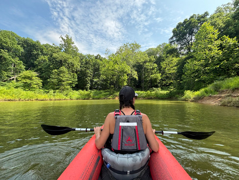 By far, the best experiences we had were out on the kayak! We kayaked both Saturday and Sunday, traveling in different directions from the marina each day. Cecil M. Harden Lake is a man-made lake and offers hundreds of little inlets to explore. Although the great expanse at the center of the lake is fun for skiing or tubing, checking out all the little inlets (and looking for shade) made it so much more exciting. We found this really cool area where some trees dipped over and into the water creating a little cave we hung out in for a while (see pic below). The water was calm and felt like bath water! We are absolutely LOVING our new inflatable kayak.